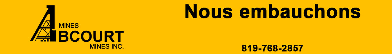 Mines Abcourt souscrit au principe d’équité en matière d’emploi. Nous remercions tous les candidats qui offriront leurs services maisseuls les candidats retenus pour une entrevue seront contactés.