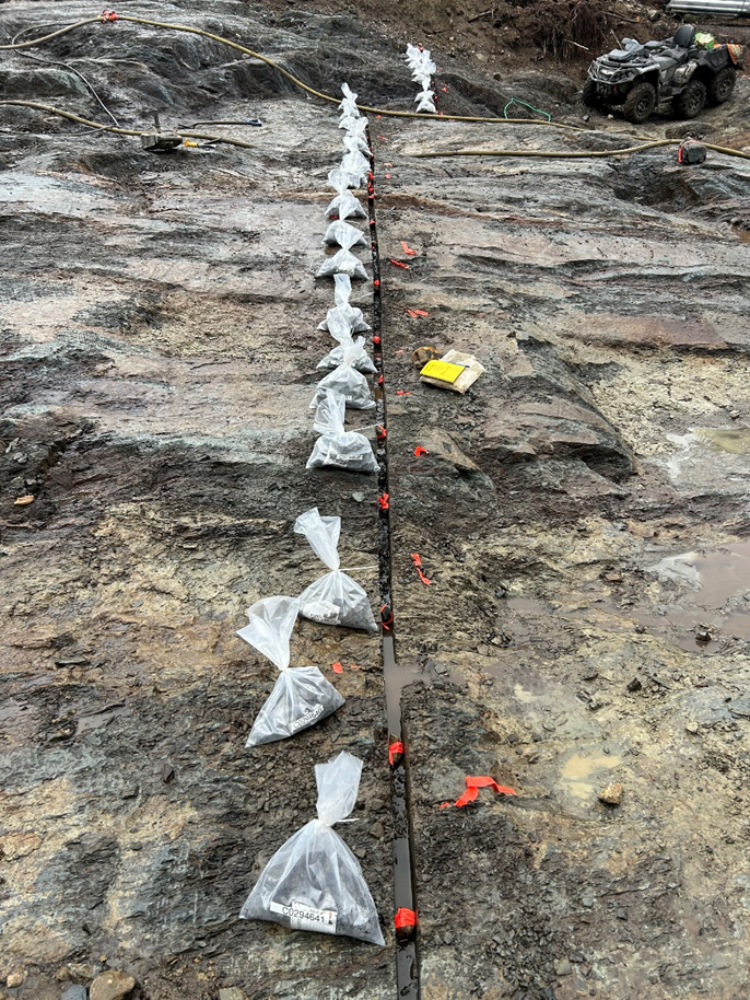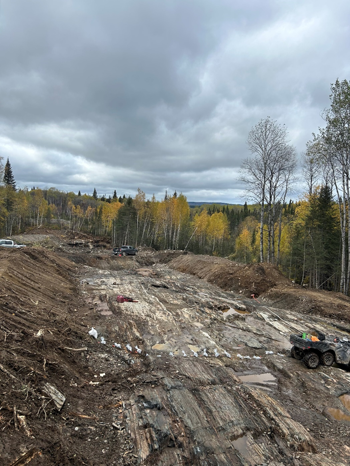 The new phase of work will have made it possible to connect all the strippings together over a lateral distance of more than 200 metres. It should be recalled that the Company announced results of up to 22.7 g/t gold over 7 metres, including 163 g/t over 0.5 metres (see press release of August 21, 2024) during the first phase of stripping. The new work will also have made it possible to extend the length of each of the channels. During the first phase of channeling, these were on average 7 metres long, while for this phase, they are on average 18 metres long. This phase of work exposes over 200 metres of high-grade gold mineralization that could correspond to the same type as that reported by Cambior to the south of the Flordin deposit (South Zone). The mineralization described in the historical work for the South Zone is similar to that encountered in the Cartwright sector, which is located 2 km further east.