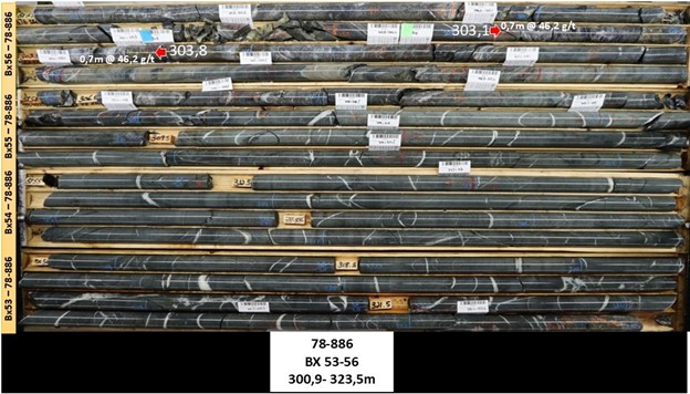 | 78-886 | 303.10 | 303.80 | 0.70 | 41.62 | 785N Vein | |