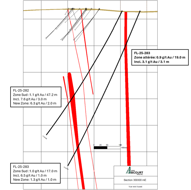 Pascal Hamelin, President and Chief Executive Officer commented: Hole FL-25-283 intersected a gold mineralized zone relatively close to surface in an altered zone, still unknown until recently. This type of alteration and mineralization appears to be different from what is observed in the South Zone area and the Cartwright area. A petrographic and geochemical study is currently underway and will allow us to correctly characterize this important altered zone of almost 20 metres thick.