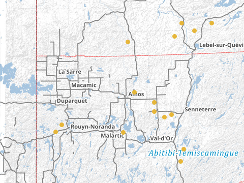 The Dormex claims lies to the south of the Sleeping Giant mine. The property consists of 68 cells covering an area of 6,189 hectares (62.9 km2). In 2010, 4,206 meters were drilled by North American Palladium (NAP) in a reverse circulation program combined with a ground and an aerial surveys to generate gold targets in an area often covered with glacial sediments more than 40 meters thick. An exploration drilling program of approximately 1,403 meters was completed by Abcourt during the fall of 2017. No significant value was obtained. Its location adjacent to Sleeping Giant is strategic.